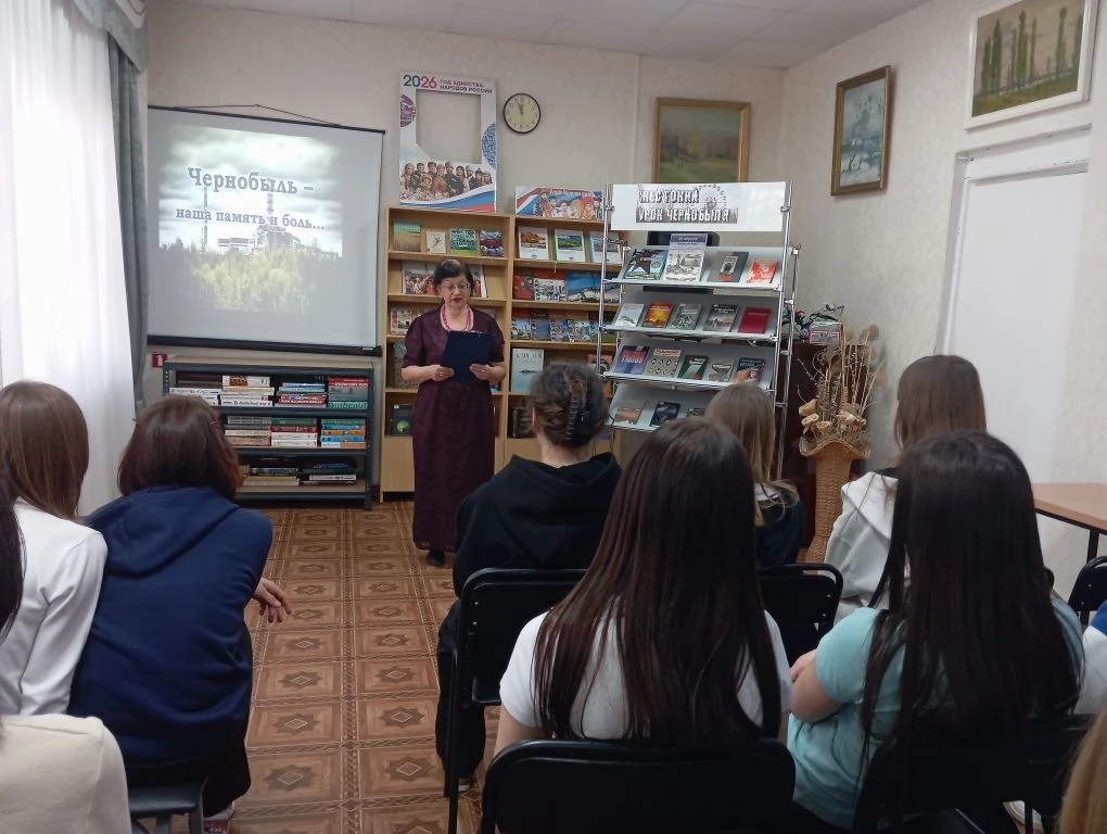 В Межпоселенческой библиотеке состоялся урок памяти «Чёрный день Чернобыля» для учениц 8 «А» и 8 «Б» классов МБОУ ООШ № 14. Названием мероприятия послужило стихотворение кубанской поэтессы Любови Мирошниковой, которое прочитала библиограф Инесса Попова. В продолжение встречи прозвучало другое стихотворение Любови Кимовны – «Звезда полыни». Произведение посвящено душистой траве – полынь, у которое есть и иное имя: чернобыль.