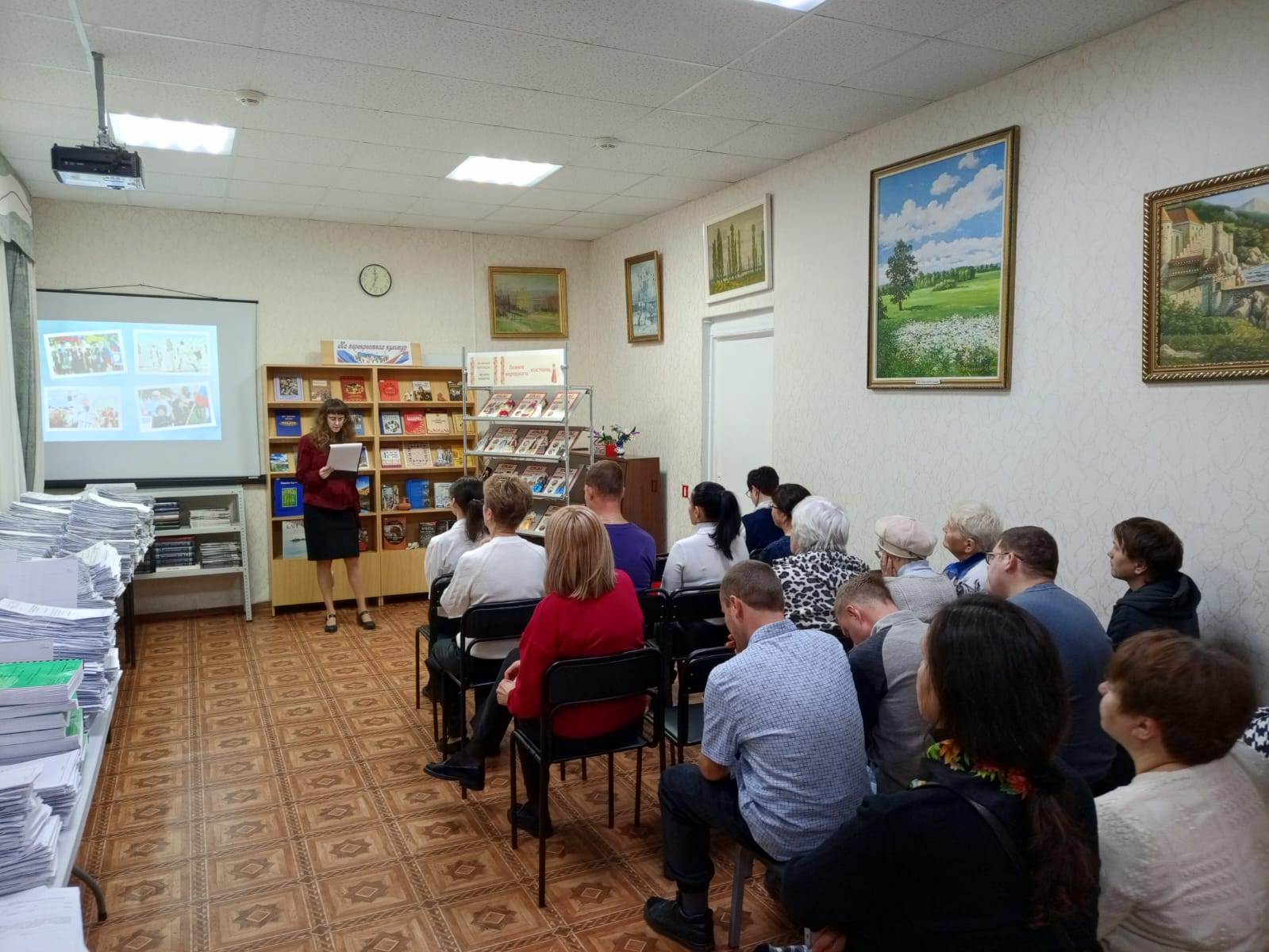 Продолжилось мероприятие литературно-музыкальной гостиной «Многоязычная лира России». Заведующая отделом обслуживания читала стихотворения кубанского поэта Кронида Обойщикова, аварца Расула Гамзатова, татарина Мусы Джалиля, башкирки Фаузии Рахимгуловой и коми-поэтессы Александры Мишариной. Завершилась она видеозапись песни «Желаю тебе, Земля моя!» в исполнении участников проекта #МУЗЫКАВМЕСТЕ.
