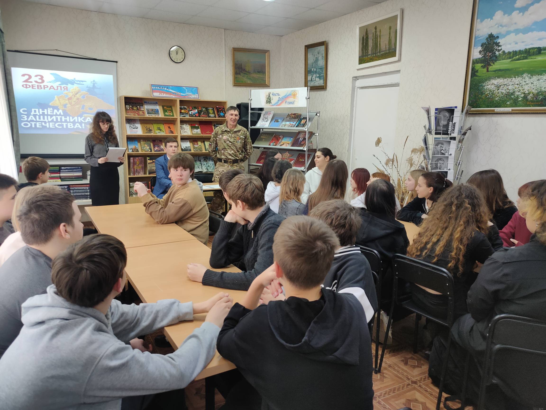 17 февраля 2026 года, в преддверии Дня защитника Отечества, в Межпоселенческой библиотеке состоялось мероприятие «Есть такая профессия – Родину защищать!» для учащихся 8 «А» класса МБОУ ООШ № 14. Встреча прошла в форме военно-патриотической игры.